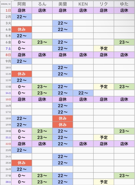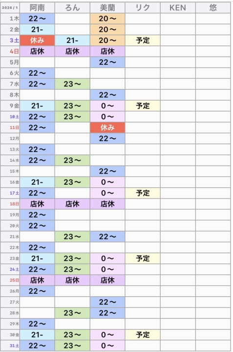 ⭐️スタッフ出勤日